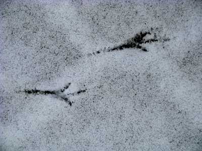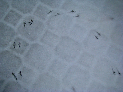When I finally got home at noon and opened the slider glass to let my dog out, I noticed something happened while I was out and about. Not only did we get a light dusting of snow, we also had some visitors.